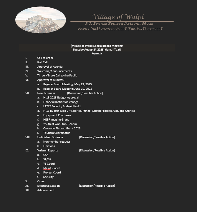 Walpi Village Meeting September 23, 2025 6pm I'Taaki